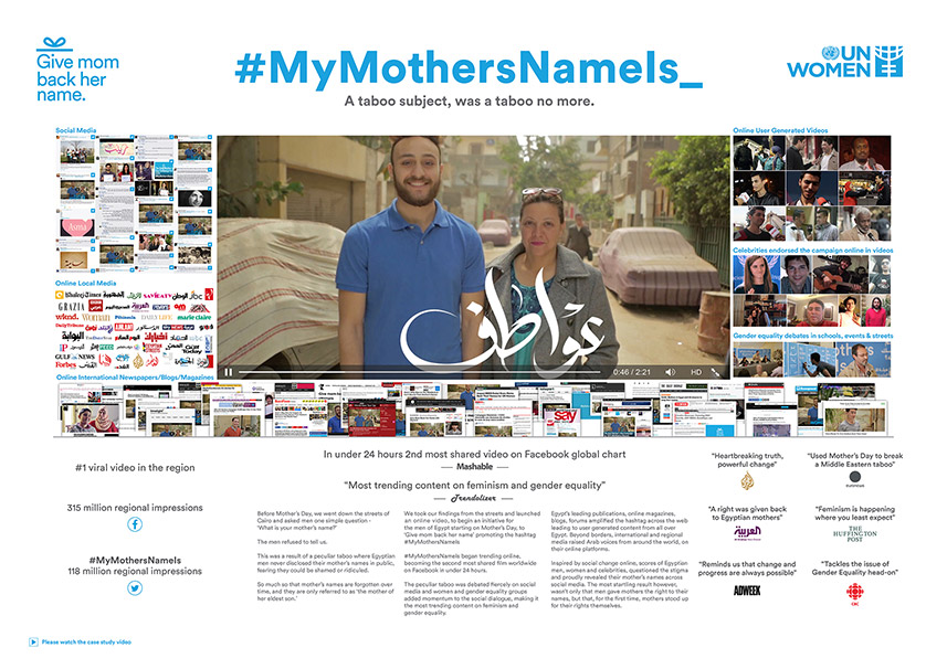 UN Women 아랍국가 사무소는 이 문제를 바꾸기 위해 ‘엄마에게 이름을 돌려주세요(Give Mom Back Her Name)’ 캠페인을 시작했습니다.